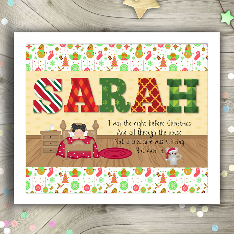Personalised Child’s Night Before Christmas print with Child’s Name and first lines of the famous Christmas poem printed.
